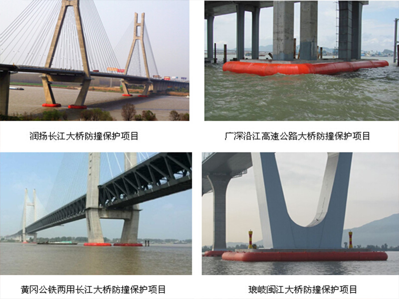 自浮式橋梁防撞是由纖維增強(qiáng)鋼覆復(fù)合材料、內(nèi)設(shè)消能肋、消能柱,內(nèi)填耗能閉孔泡沫材料,主要為了消耗船舶撞擊時的撞擊力,以保護(hù)船舶和橋梁本體結(jié)構(gòu)免受損傷。纖維增強(qiáng)鋼覆復(fù)合材料耐腐蝕性能極佳,使用壽命長,能長達(dá)幾十年,耐受降水、海水等各種惡劣環(huán)境中的腐蝕。自浮式橋梁防撞由纖維,碳纖維,硅材料,耗能閉孔泡沫材料等制成,能有效將撞擊力分散,消能肋為波形筋段和面層聯(lián)接,又和消能柱交叉,呈波形和螺旋柱形便具有類似彈簧的結(jié)構(gòu),是有較強(qiáng)的緩沖變形能力,消能材料受到撞擊,消能柱因?yàn)樽矒袅嚎s變形,一方面將撞擊物的動能轉(zhuǎn)化為彈性勢能,另一方面延長了撞擊物與鋼覆復(fù)合材料柔性消能護(hù)舷的作用時間,最終減少了撞擊力的力量。耗能閉孔泡沫在鋼覆復(fù)合材料柔性消能護(hù)舷遭撞擊變形時產(chǎn)生耗能,防撞結(jié)構(gòu)應(yīng)允許有較大的變形,通過變形耗能將船的撞擊力降低至50%以上。